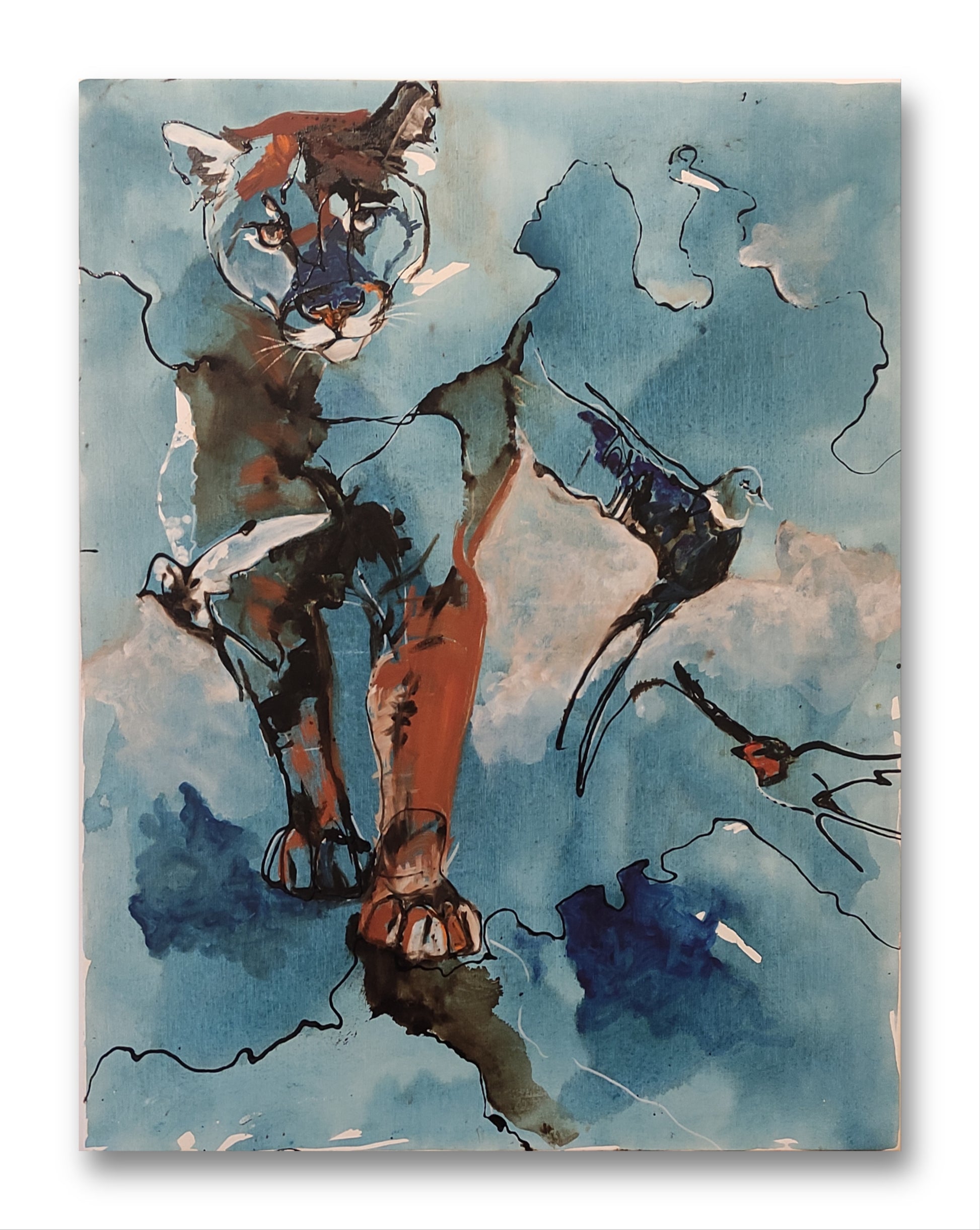 Sola y En Bandada (Alone In A Flock) - 32 x 40 inches (80 x 100 cm). Mixed media (asphalt, acrylic, and ink) on canvas