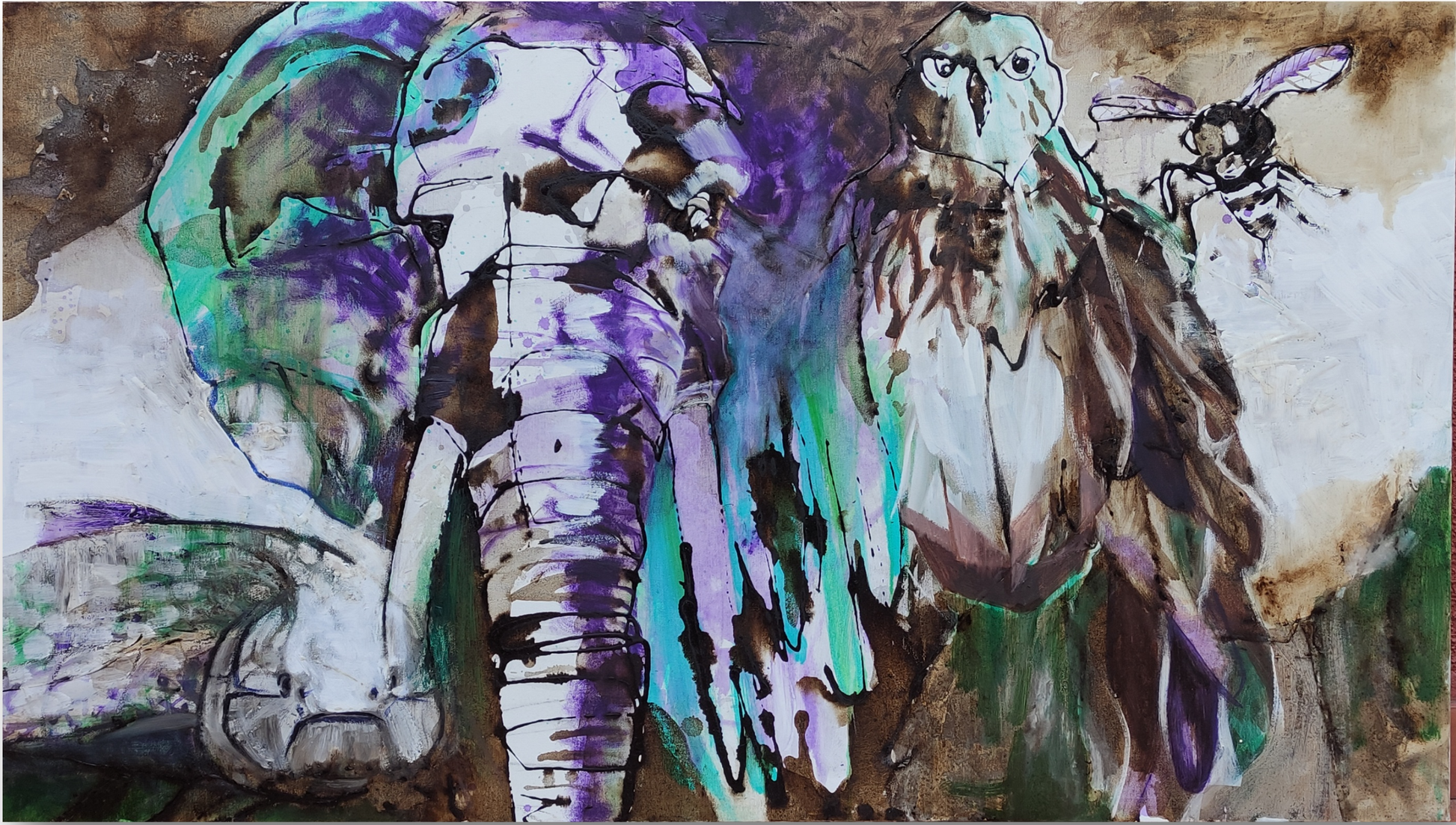 Naturaleza de Frente - 28 x 47 inches (70 x 120 cm). Mixed media (asphalt, acrylic, ink) on canvas.